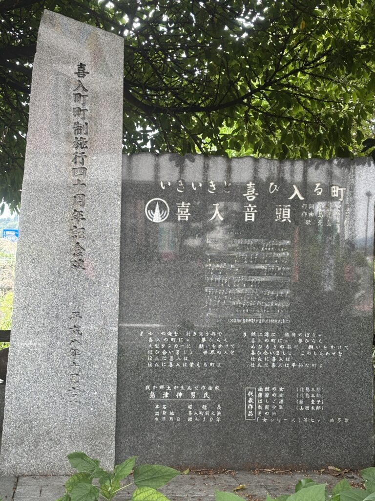 一つ目は、町の名前を象徴する『いきいきと喜び入る町』の碑☺️