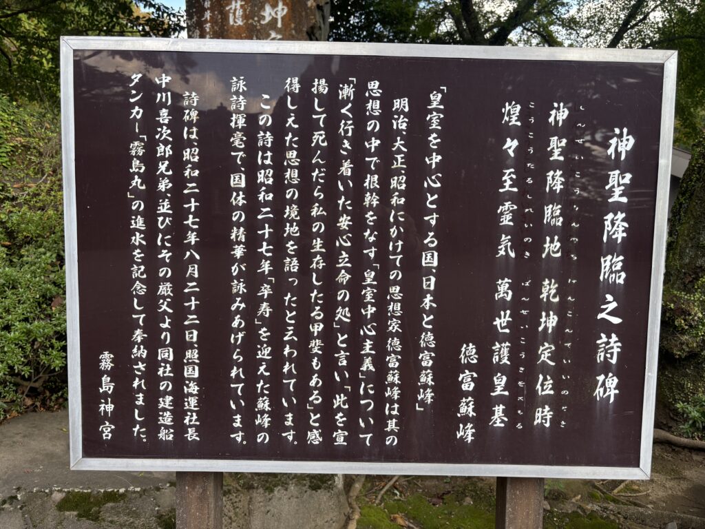 石には漢字がこれでもかとびっしり刻まれていて……😳正直、学のない私には全く読めませんでした(笑)😅 すぐ横の看板を助け舟に読んでみると、これは『詩碑』とのこと😲ルビが振ってあったおかげで文字自体は追えましたが、その高尚な意味まではなかなか……🤔