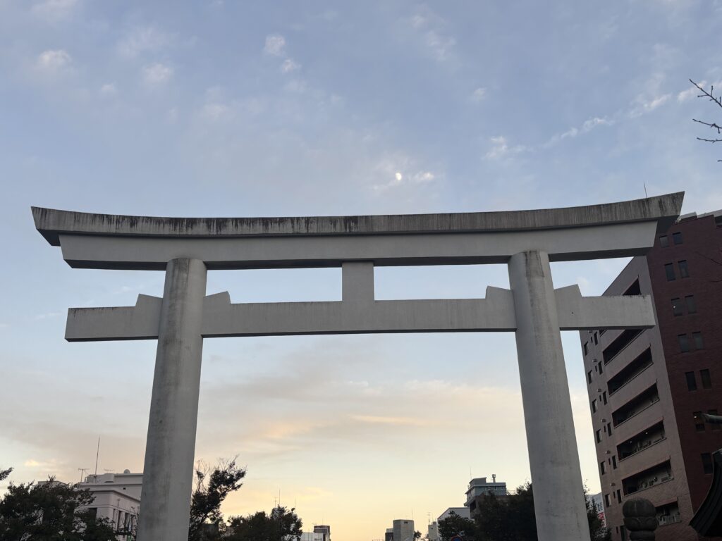 鶴丸城の御楼門の上にも月を見ましたが、ここ照國神社の鳥居の上にも月🌙何か良いことがありそうな、神秘的な気分になり、思わずここでもシャッターを切ってしまいました📸