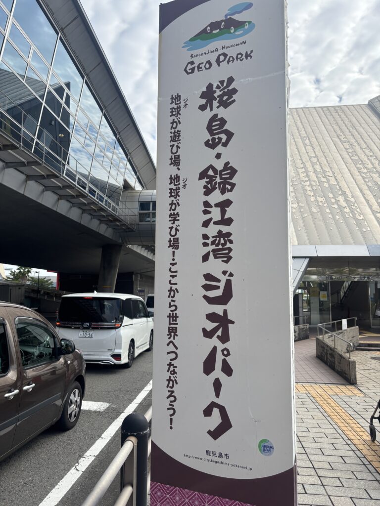 フェリーに乗るため港へ着くと、「でしょうね😏!」と思わず頷いてしまう「桜島・錦江湾ジオパーク」の大きな看板を見つけました😄