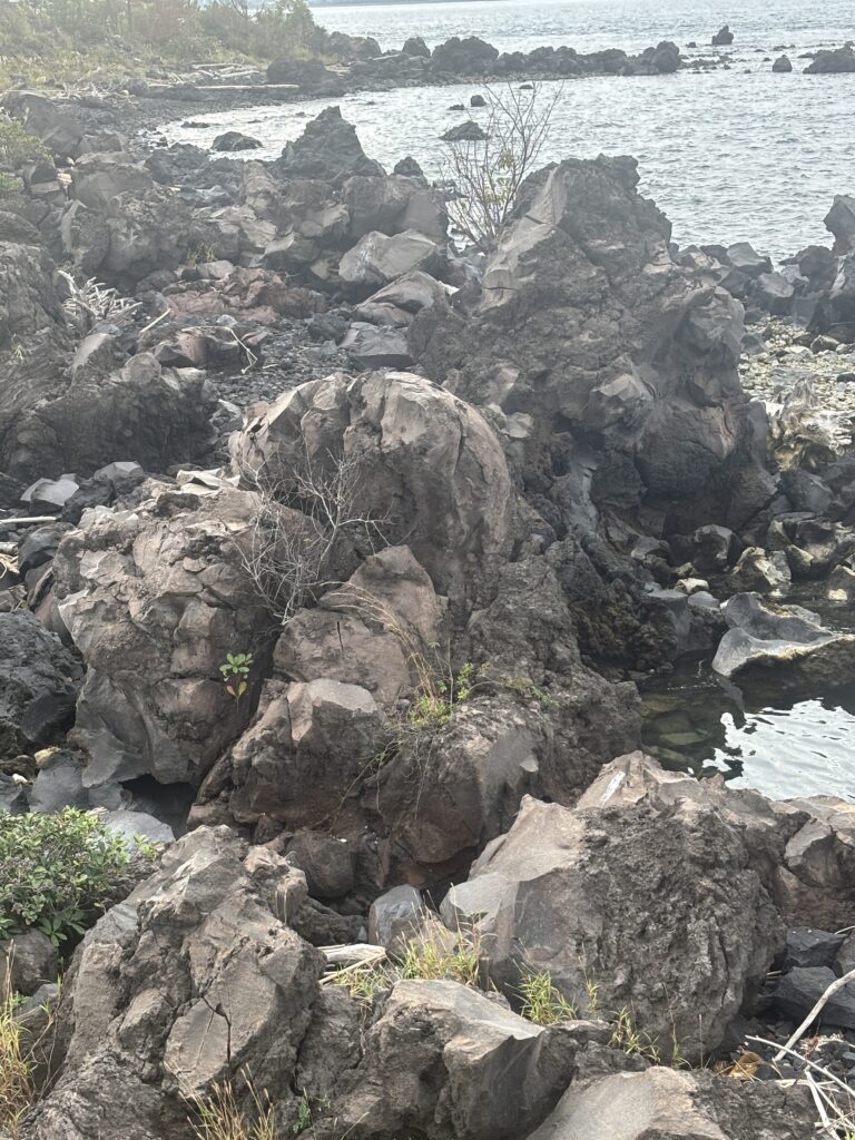 これは、きっと火山から飛んできた噴石でしょう😨「こんな大きな岩が飛んできたなんて、恐ろしい😱!」と、改めて桜島のダイナミックな自然の力を感じました😃