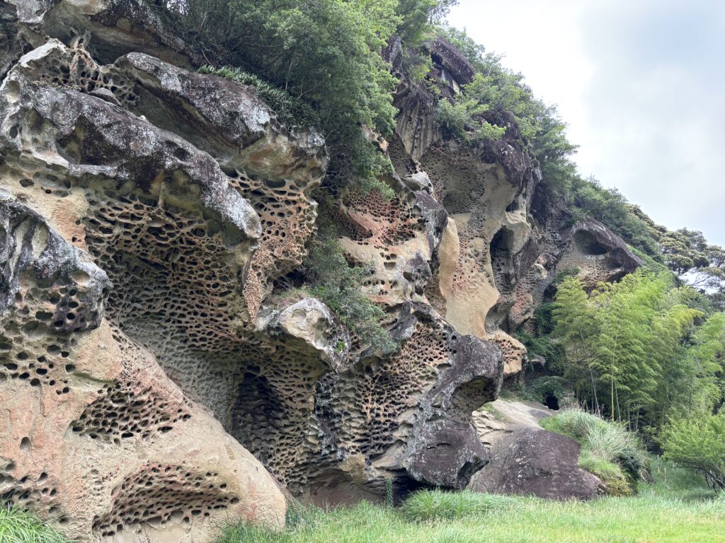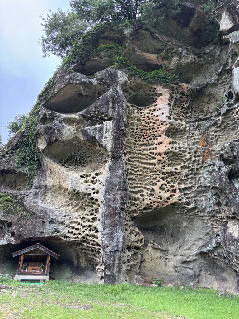 高さ約20メートル以上という岩壁には、大小様々な穴が無数に開いていて、まさに「虫が喰った」ような見た目🫣