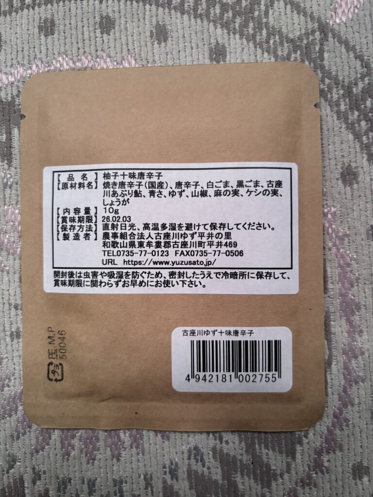 地元の特産品でしょうか、唐辛子の袋に「古座川ゆずと旅する世界のスパイス」と書いてあって、使うのが楽しみです!😋