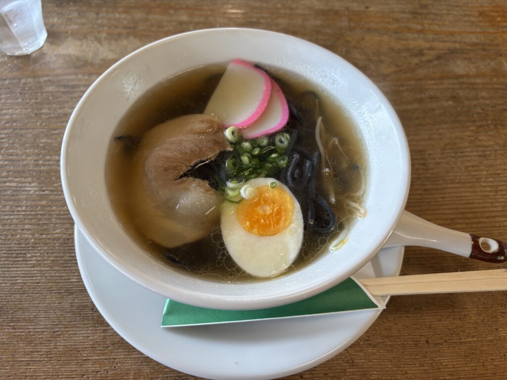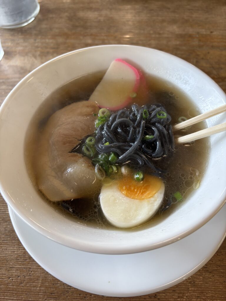 お昼時、レストランのメニューで目が釘付けになったのが、名物と書かれていた「備長炭ラーメン」🍜