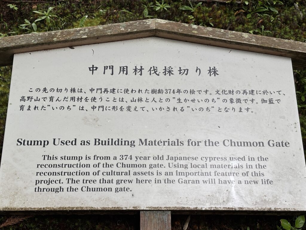 なんと、この切り株は中門の再建に使われた樹齢374年のヒノキのものだとか!😳その説明板には、「仏様の教えで育まれた”いのち”は、中門に形を変えて、生かされる”いのち”となります」と書かれていて、なんだかとても感動しました😭