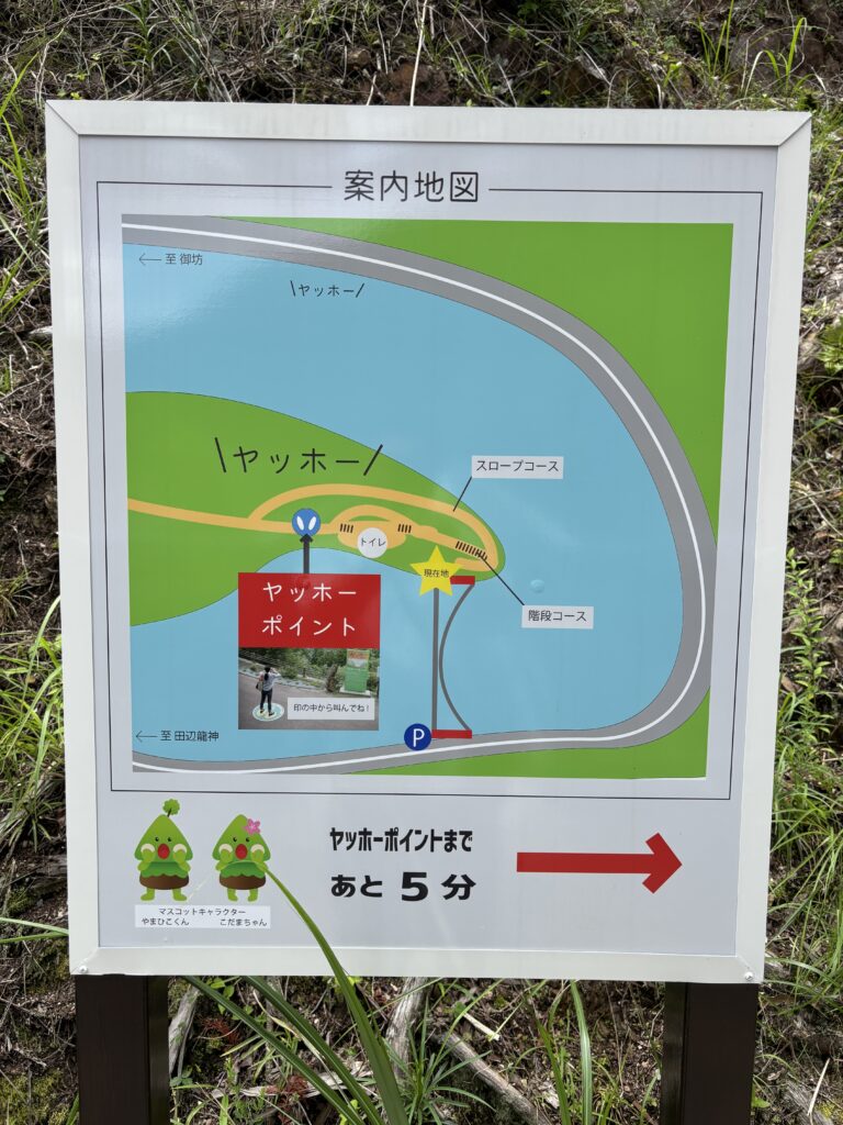 吊り橋を渡り終えると、案内地図看板がお出迎え😃