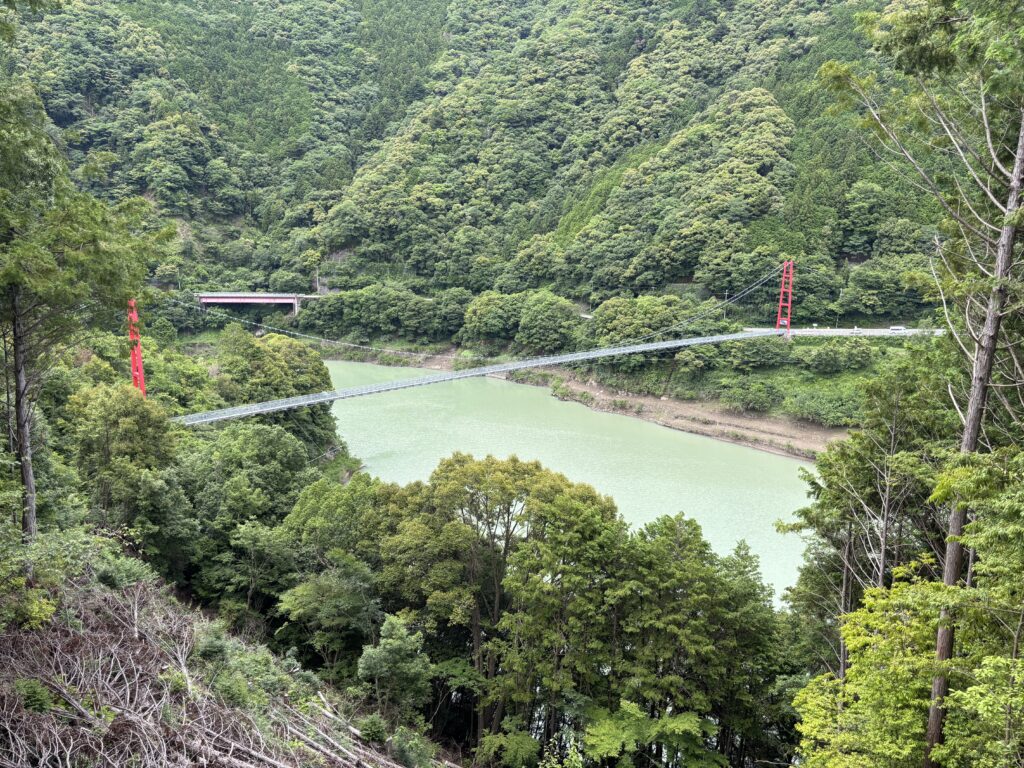 すると…山々に反響して、見事なこだまが!🗣️🗣️🗣️🗣️🗣️🗣️自分の声が山にこだまして、何度も返ってくる体験は、想像以上に感動的でした😂そして、ここから先ほど渡った吊り橋もきれいに見えて、達成感もひとしおです☺️