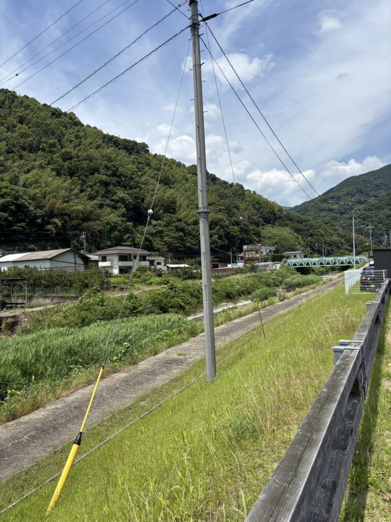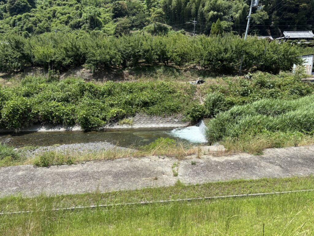 すぐ横には穏やかな川が流れていて、その向こう側には豊かな緑の山がそびえ立っています🏞️