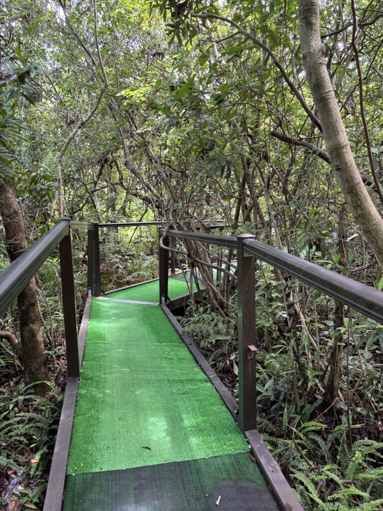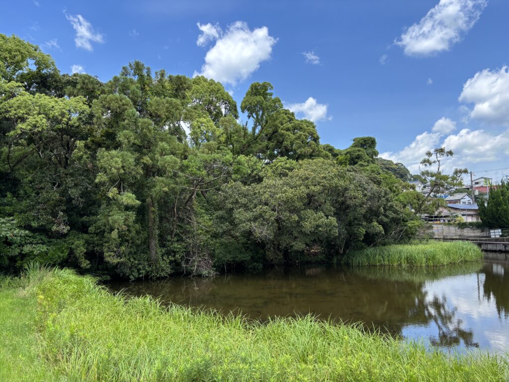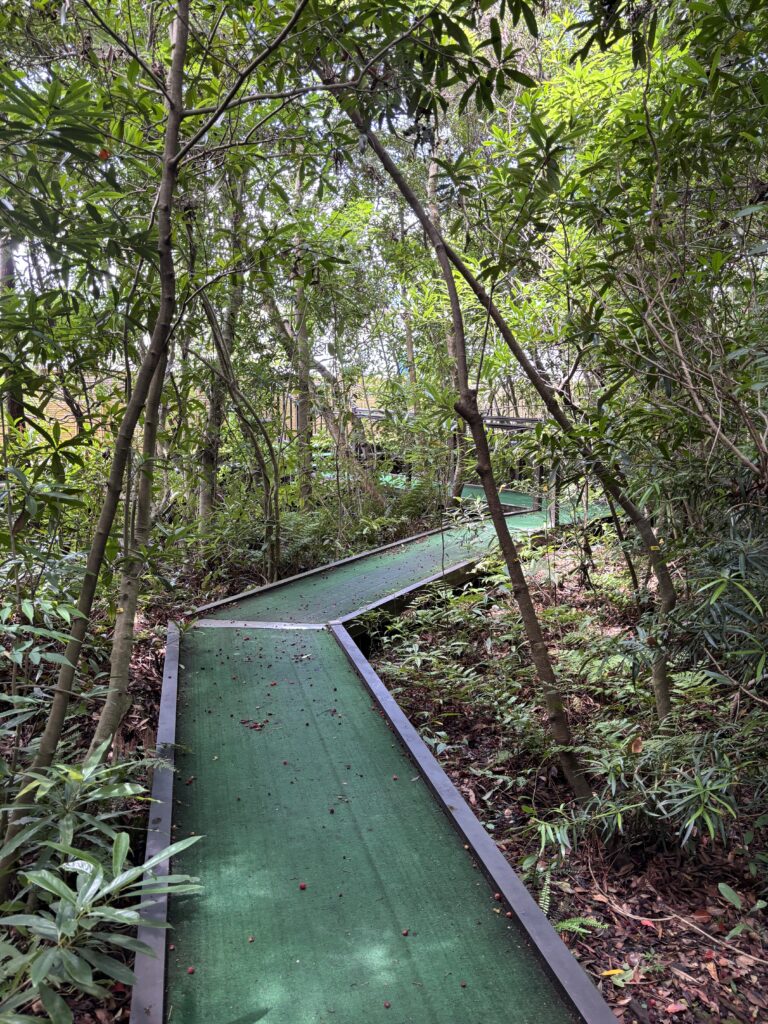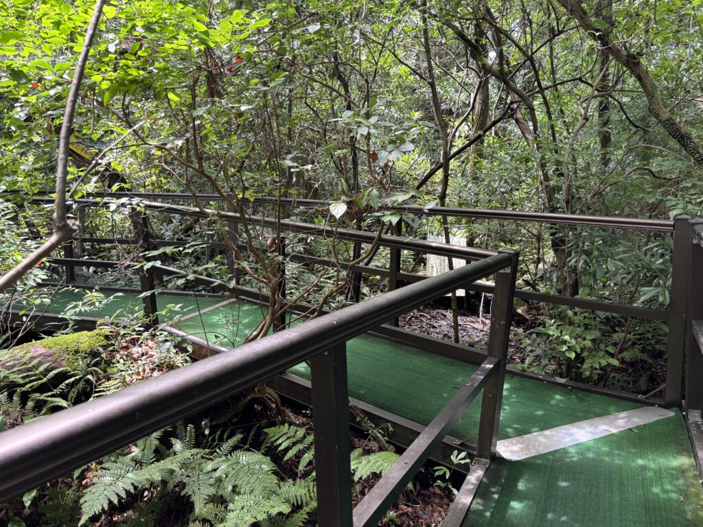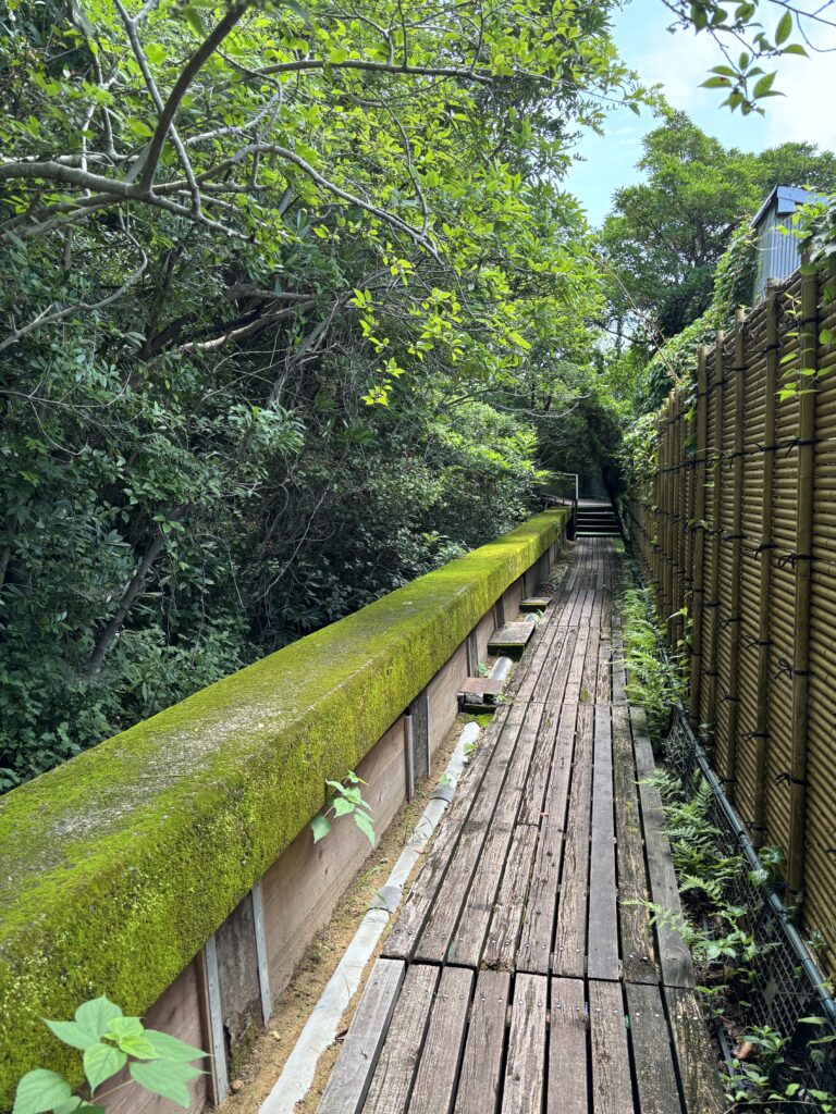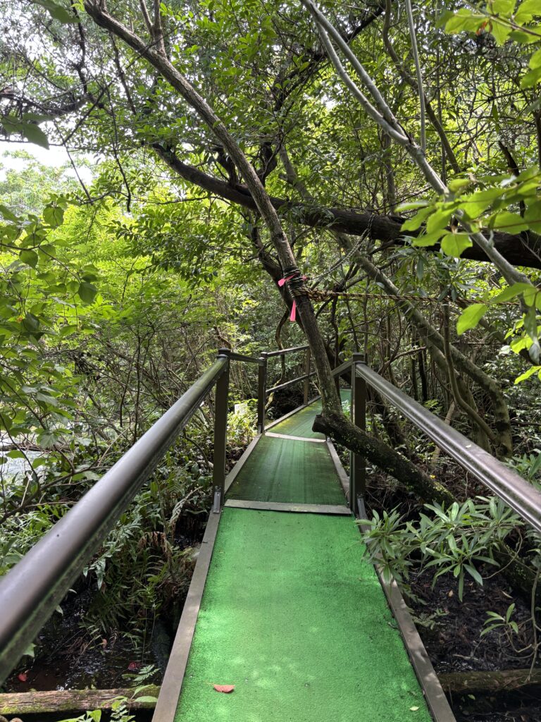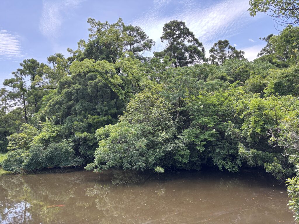池の方へ歩いていくと、まず現れたのが池の縁を歩く通路です🚶♂️➡️
