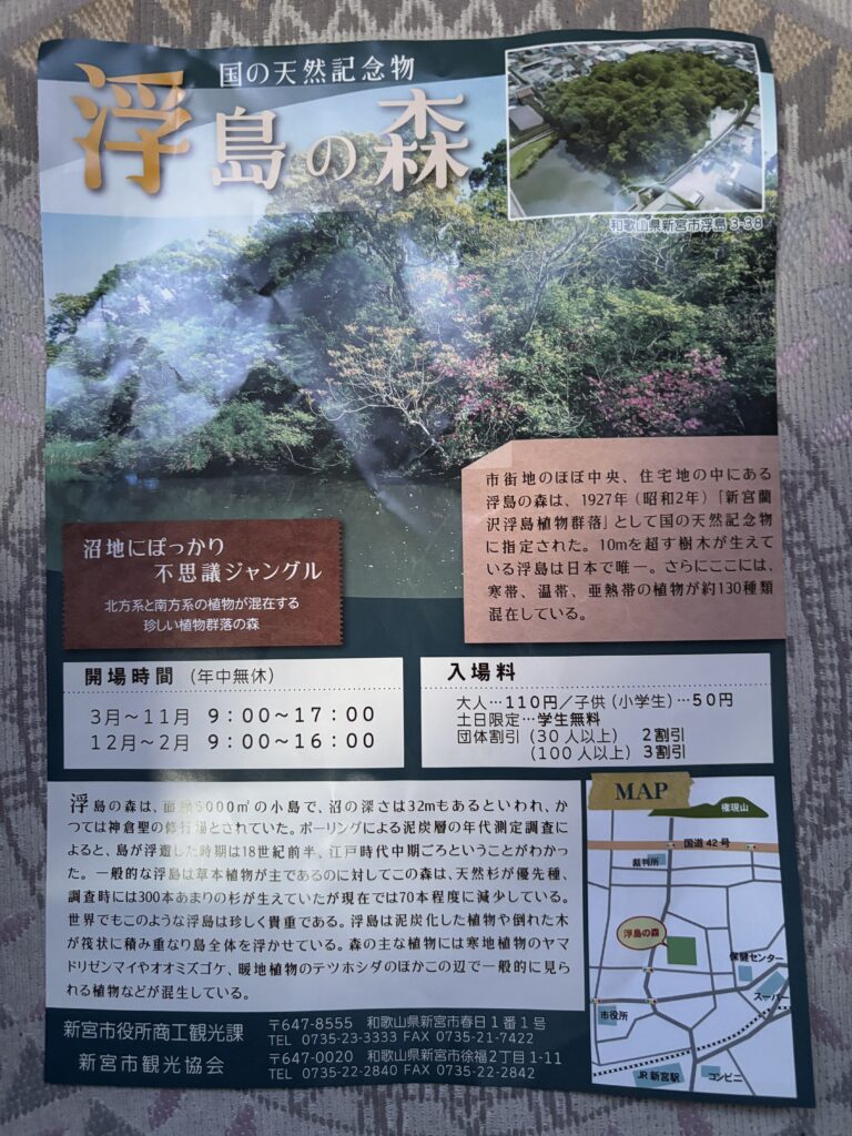 今回は和歌山県の新宮市街をぶらぶらドライブしていたところ、「天然記念物 浮島の森」という看板を発見しました🙄