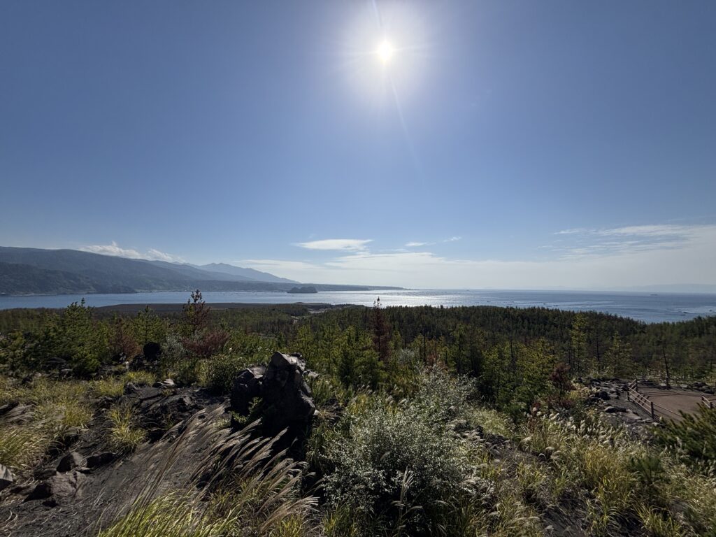 山側に圧倒されがちですが、くるりと振り返ると、そこには穏やかな錦江湾(きんこうわん)の海が広がっています🌊