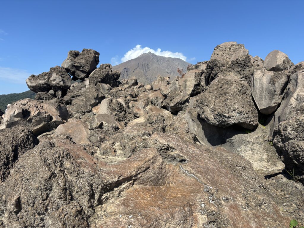 ここでも主役は、大正大噴火で固まった黒々とした溶岩の岩々🪨🪨