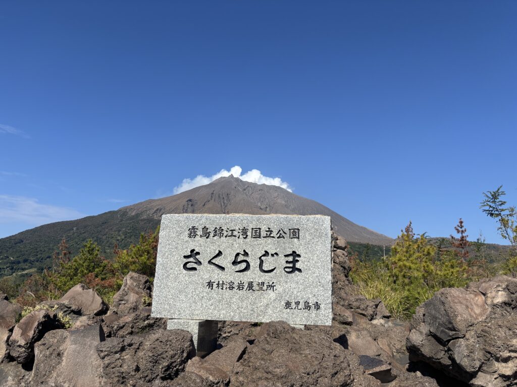 📸 これぞ決定版!「さくらじま」石碑と雄大な山影