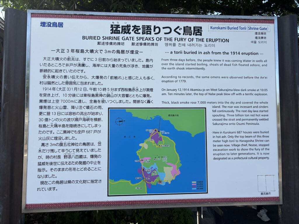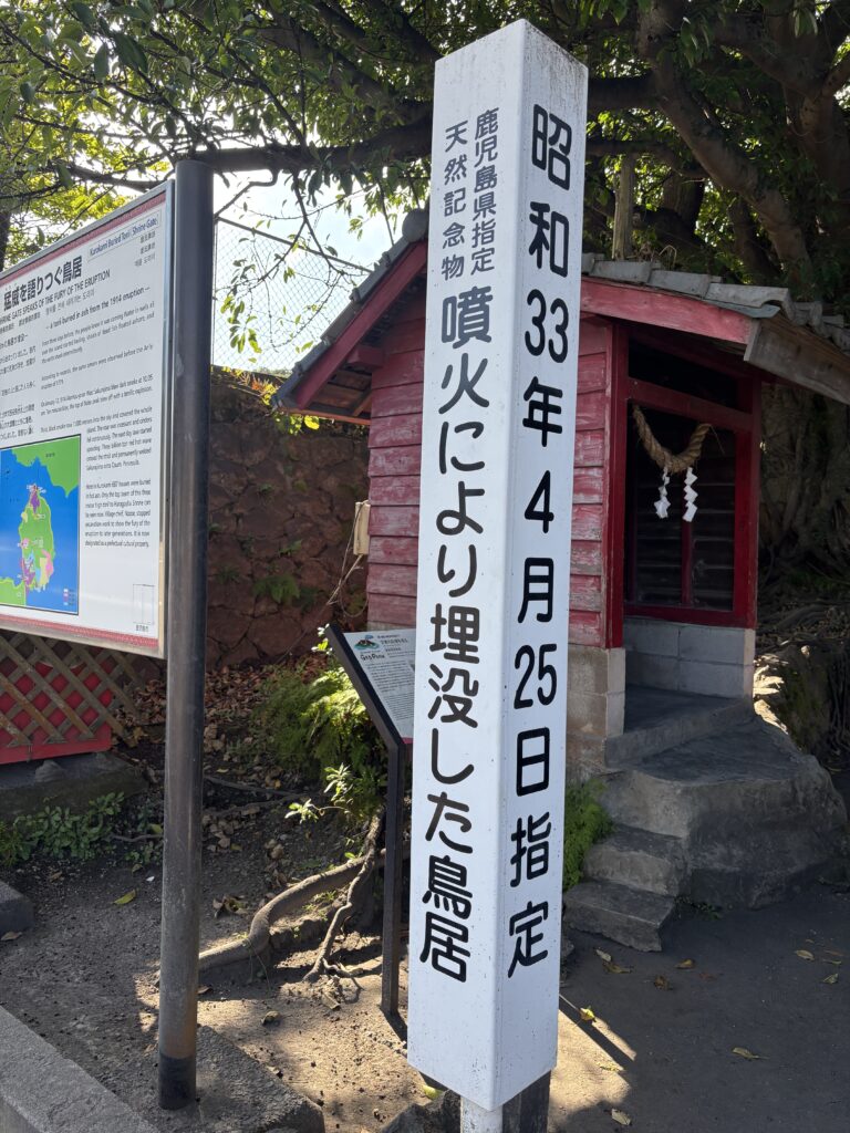 特に印象的だったのは、当時の村長さんが「後世にこの災禍を伝えるため、あえて鳥居を掘り起こさず、そのままの姿で残そう🥸」と決断したという話🙂そのおかげで、100年以上経った今、兵庫から来た私のような旅人も、火山のエネルギーの凄まじさを直に学ぶことができるのです👨‍🎓