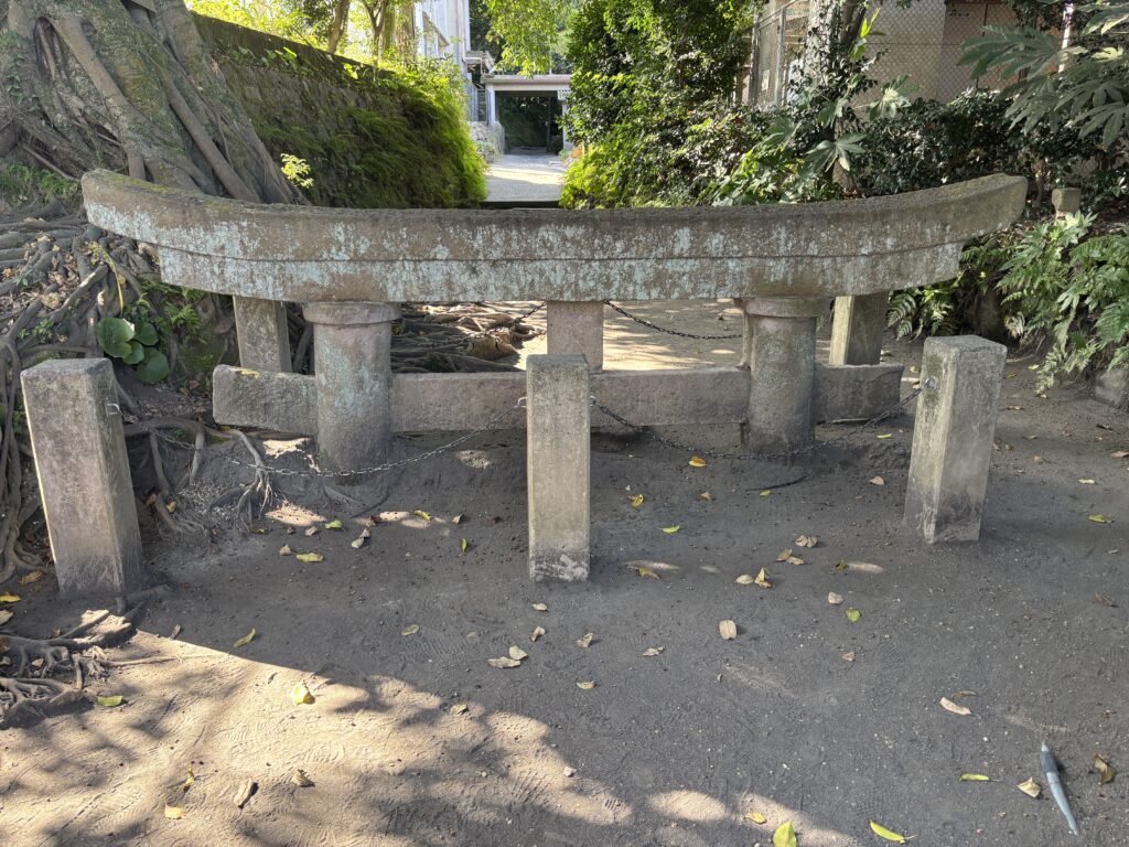 遊歩道を歩き、その場所にたどり着いた瞬間、全身に鳥肌が立ちました😖 目の前に現れたのは、地面からニョキッと頭だけを出した、あまりにも不自然な姿の鳥居です⛩️