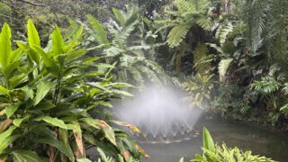 前回は「ジャングル花の谷」で、観葉植物の常識を覆す巨大なセロームやヘゴの木に圧倒されました😳そのままさらに奥へと歩みを進めると、景色は鬱蒼とした森から、キラキラと水面が輝く水辺のエリアへと変わっていきました😃