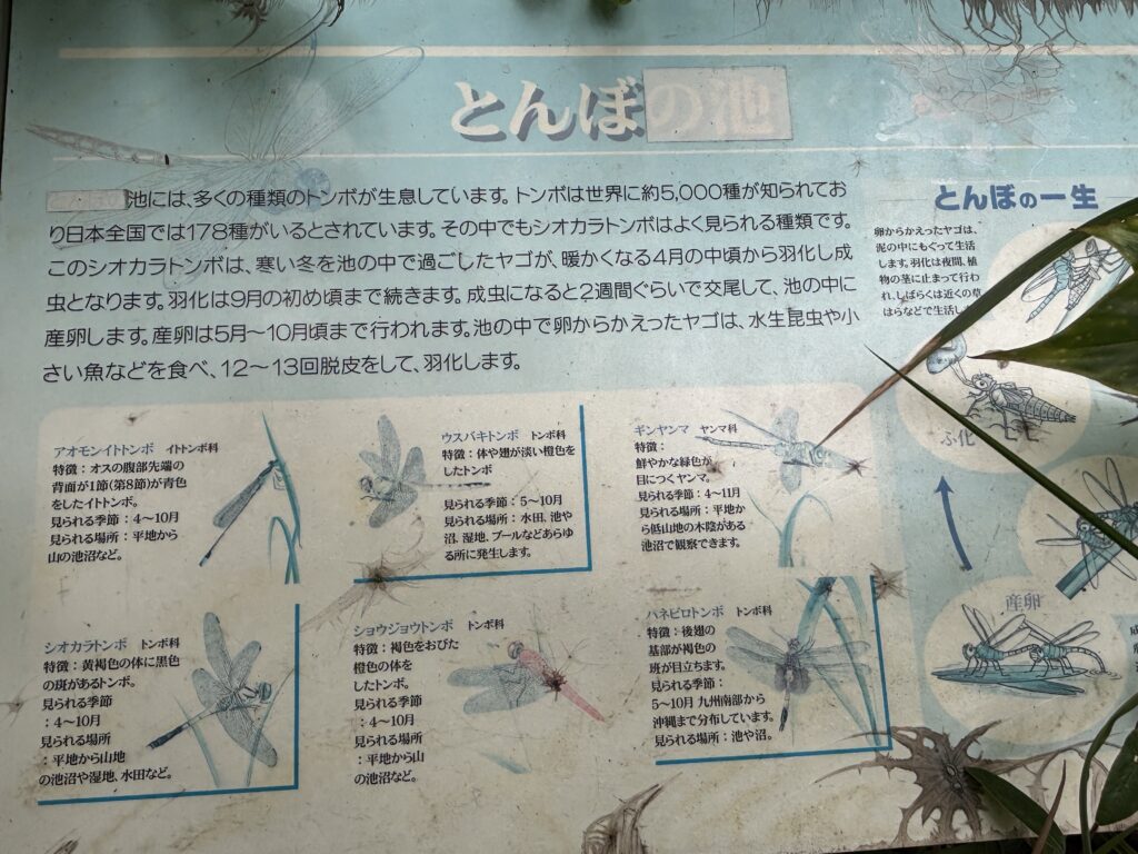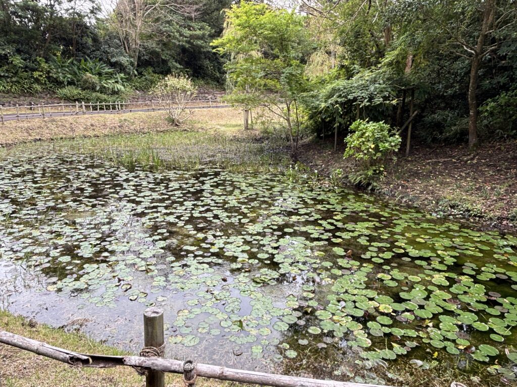 訪れた時はあいにく姿を見かけませんでしたが、「トンボ池」という名前だけあって、シーズンにはきっと色とりどりのトンボたちがこの睡蓮の間を飛び交うんでしょうね😊 どんな種類のトンボが集まるのか、想像するだけでも楽しくなります😌