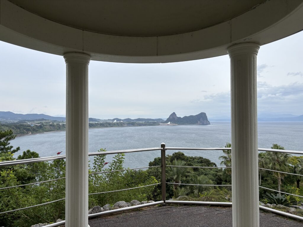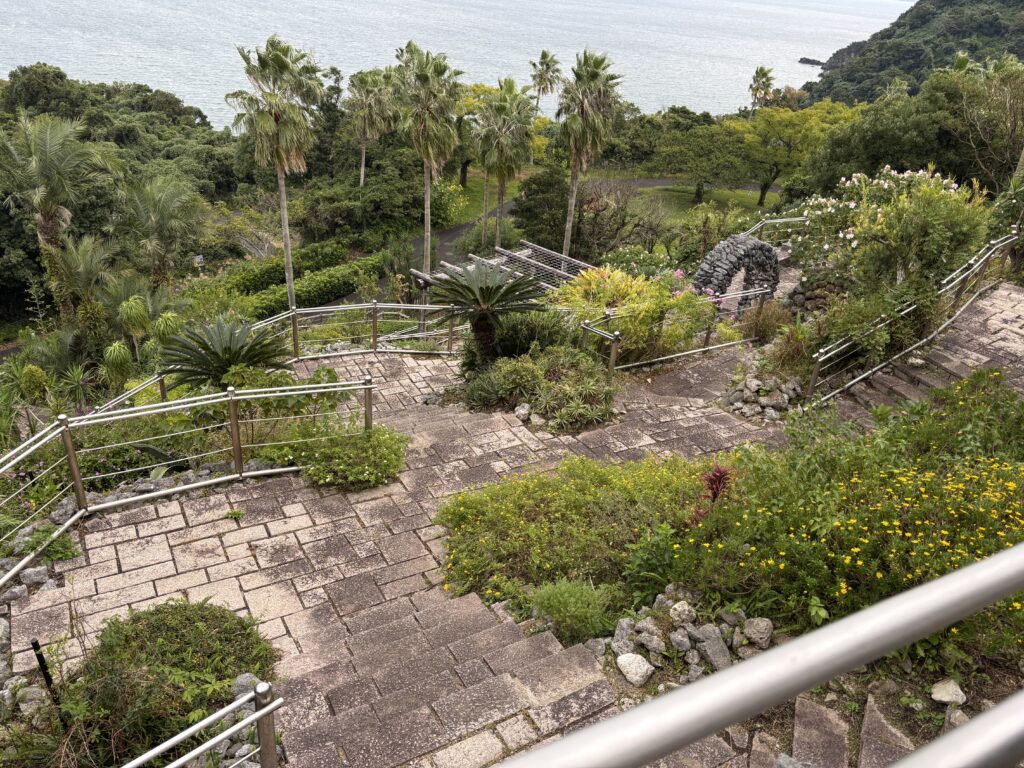 「ここから海を一望できるかな🧐?」とガゼボに歩み寄った瞬間、思わず「おぉ……」と声が漏れました😲 ガゼボの下、山の斜面を活かした広大な敷地に、これぞ南国!🌴というべき見事な庭園が作られていたんです🤠