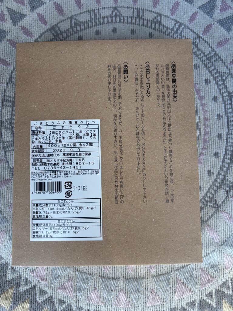 今回は「ごまとうふ 2種食べ比べ」というのをゲットしたので、帰ってから食べるのが楽しみです!😋モチモチとした食感と、胡麻の濃厚な風味がたまらないんですよね😉