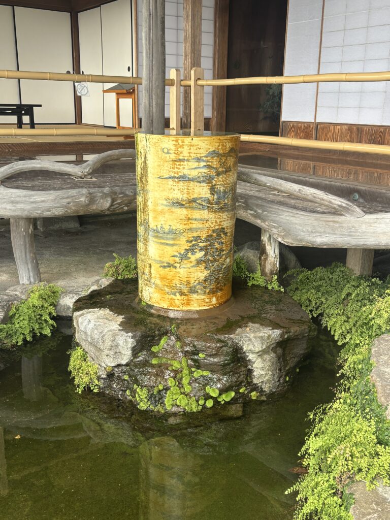 御殿の外側には、手水鉢(つくばい)が二つ並んでいました😃一つは丸くて黄色い陶器製