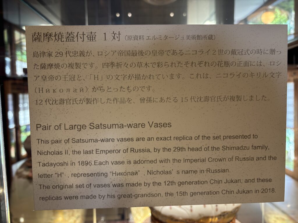 これは、島津家29代当主・忠義公が、ロシア帝国最後の皇帝ニコライ2世の戴冠式に贈った作品の複製だそうです🇯🇵➡️🇷🇺