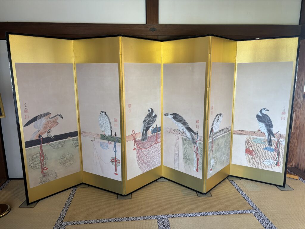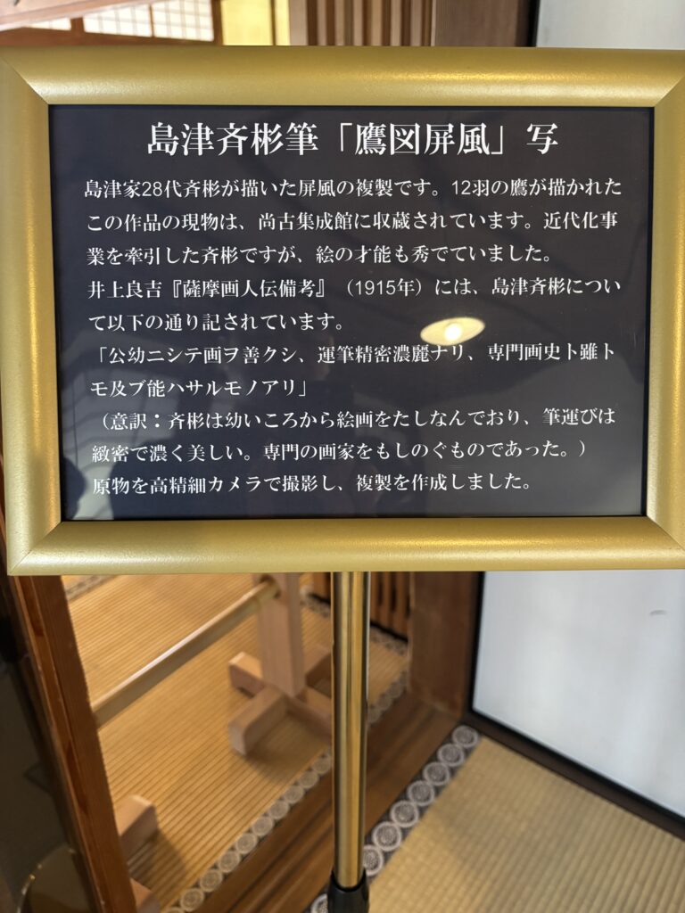 そして、私が特に見入ってしまったのが、島津家28代・斉彬(なりあきら)公が描いた「鷹図屏風(たかずびょうぶ)」の写しです👨🎨🖼️