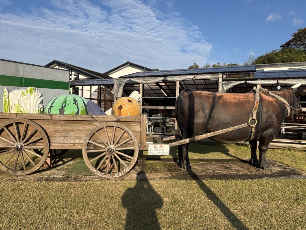 さらに近くには、牛が荷車に野菜を積んで引いている像もあり、農業と畜産が盛んなこの地域の豊かさを象徴しているようでした🌽🥕