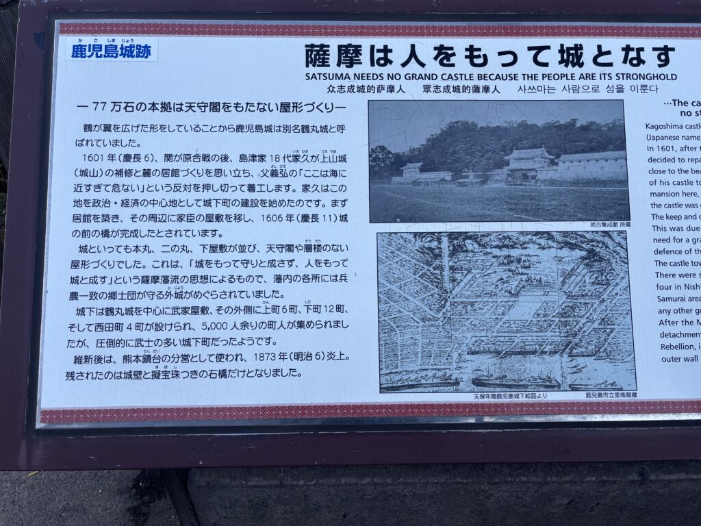 鶴丸城は、天守閣を持たない珍しい城の作りであり、「薩摩は人をもって城となす」という薩摩藩の精神を表しているそうです🥸