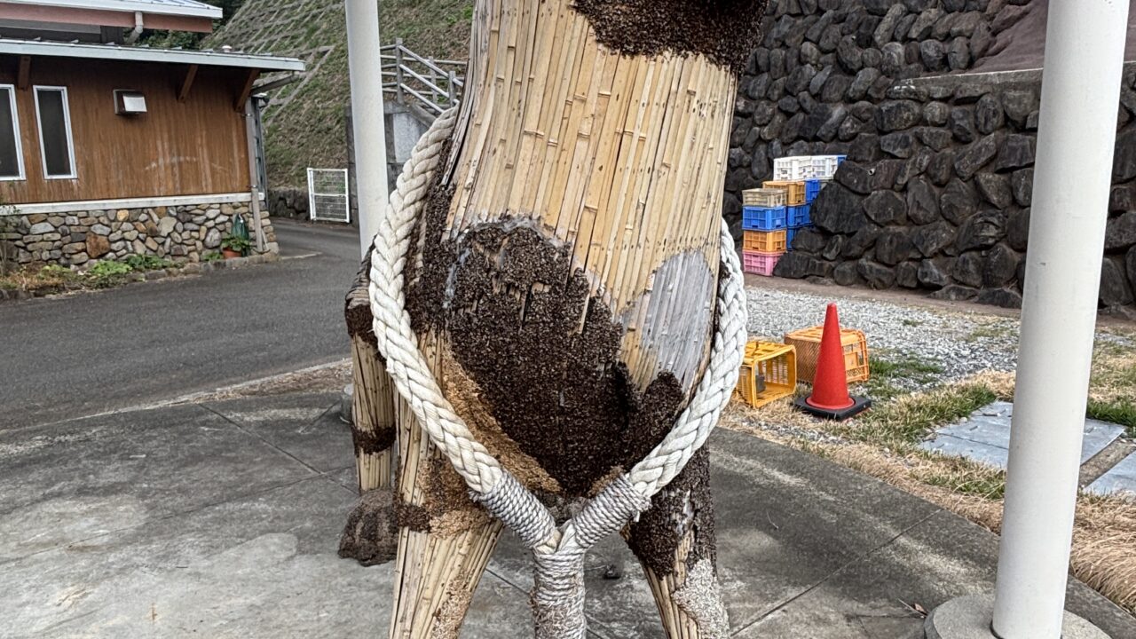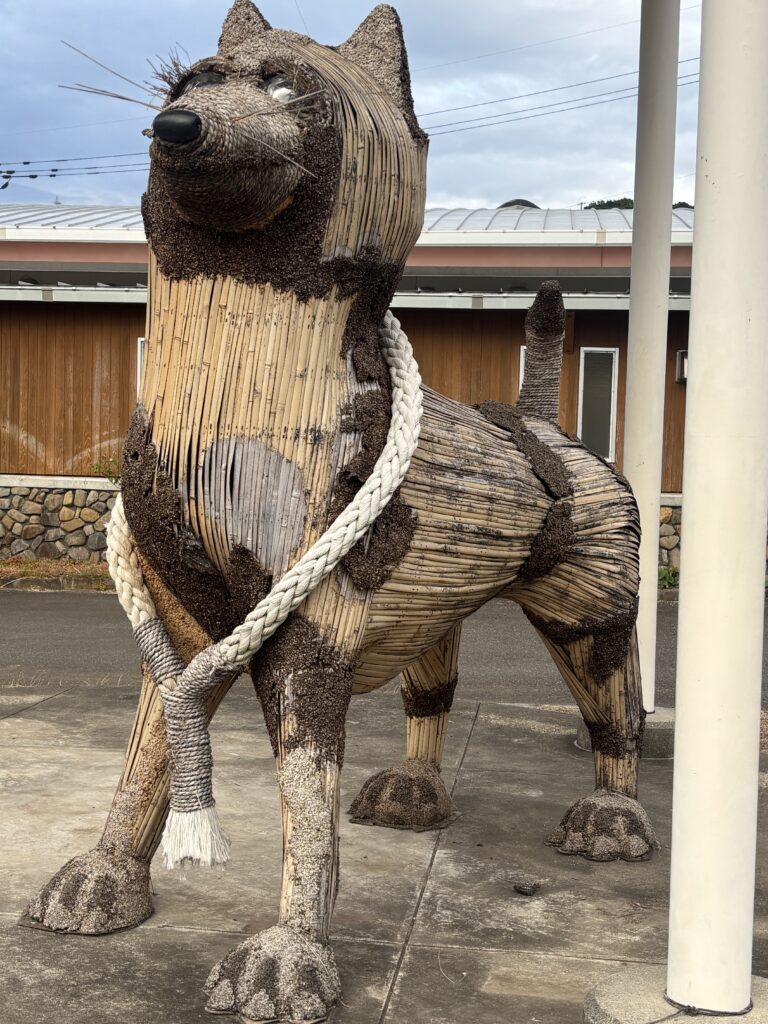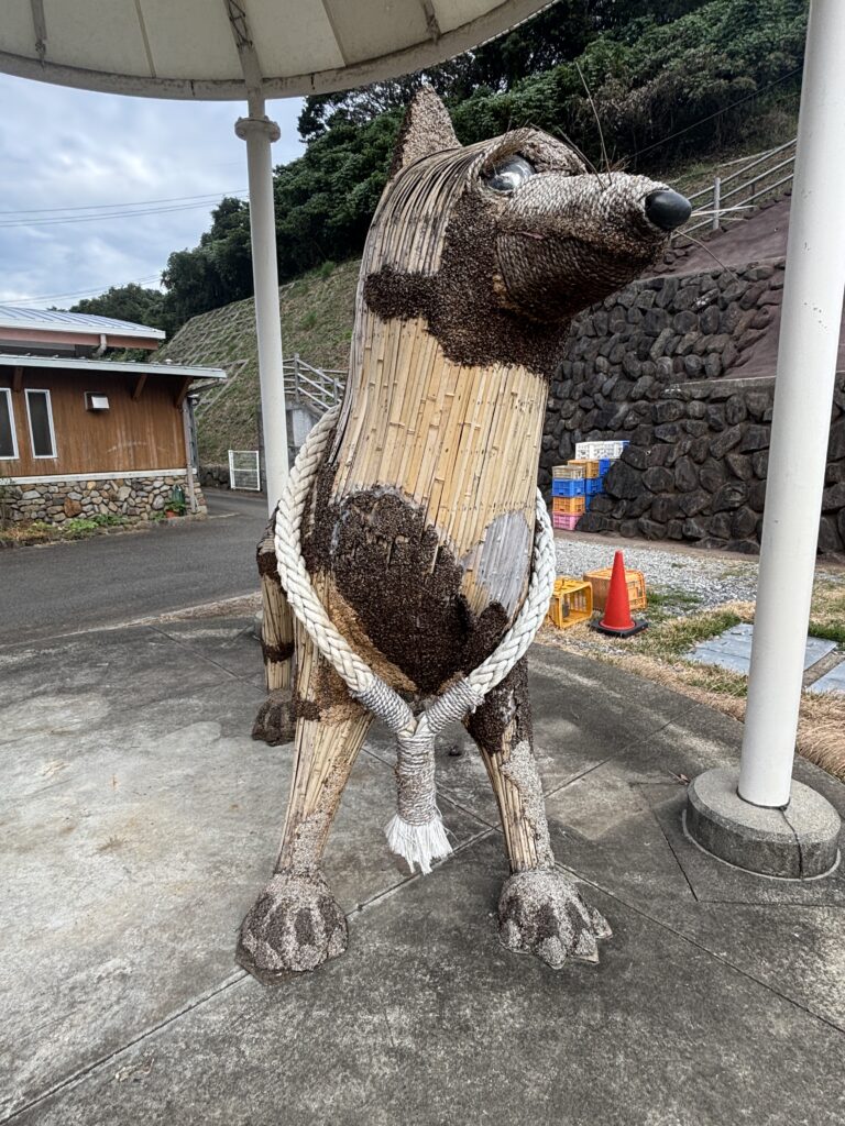 高さ3mはあろうかという、巨大な犬のオブジェです🐕! 竹などの自然素材を丁寧に編み込んで作られていて、造形物としてのクオリティはめちゃくちゃ高い🤠園芸のトピアリー作りにも通ずる職人技を感じましたが……🤠周辺をどれだけ探しても、説明書き一つありません😅(笑)😅